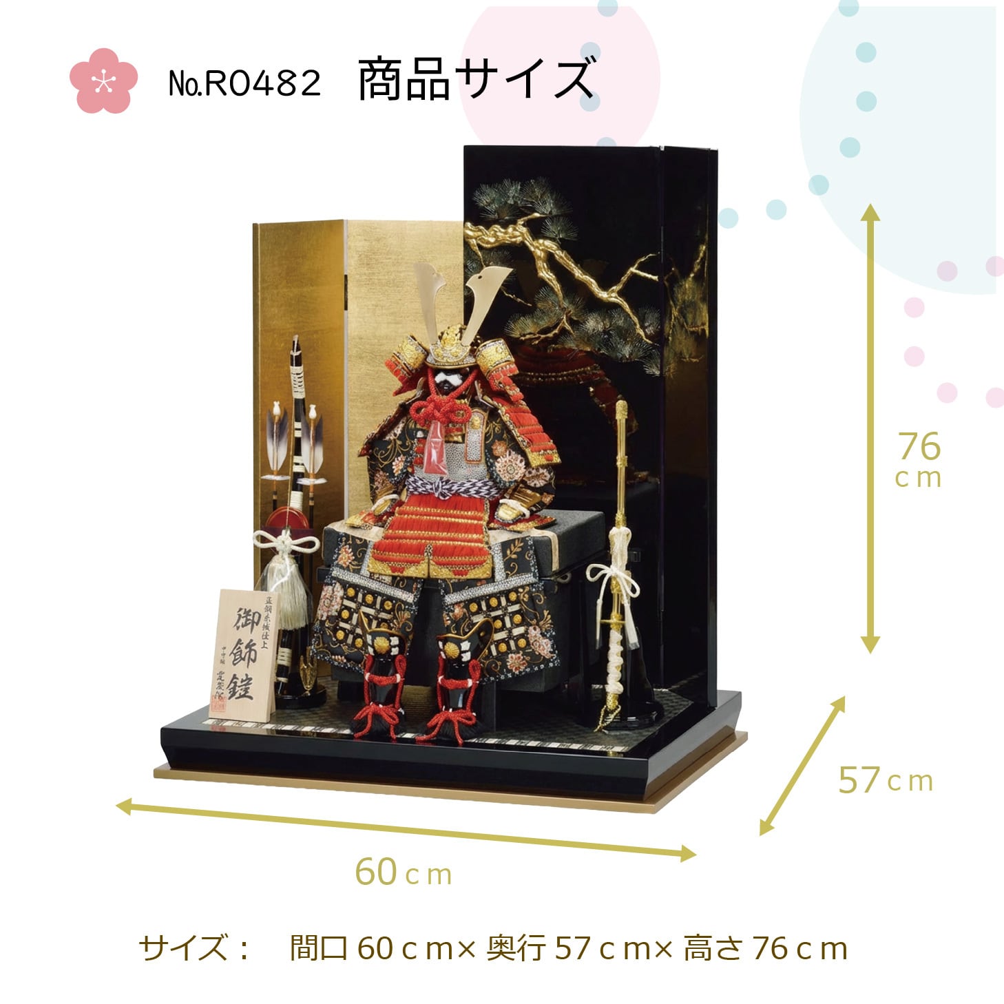 №R0482 颯大鎧 赤糸縅 違い屏風松 黒塗り平台