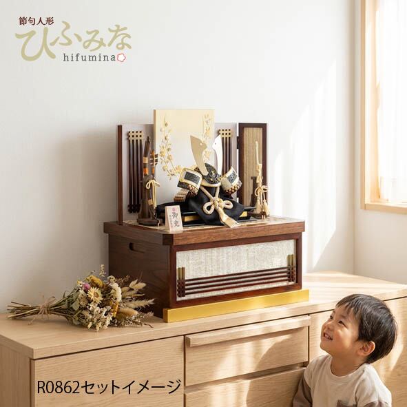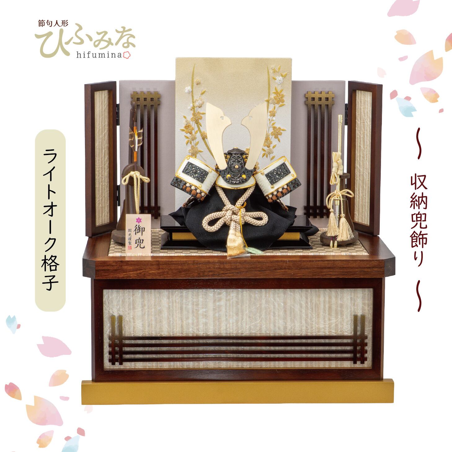 №R0862 金ミラー鉢 黒桜 アイボリー縅兜 収納 ライトオーク風立ち桜 白