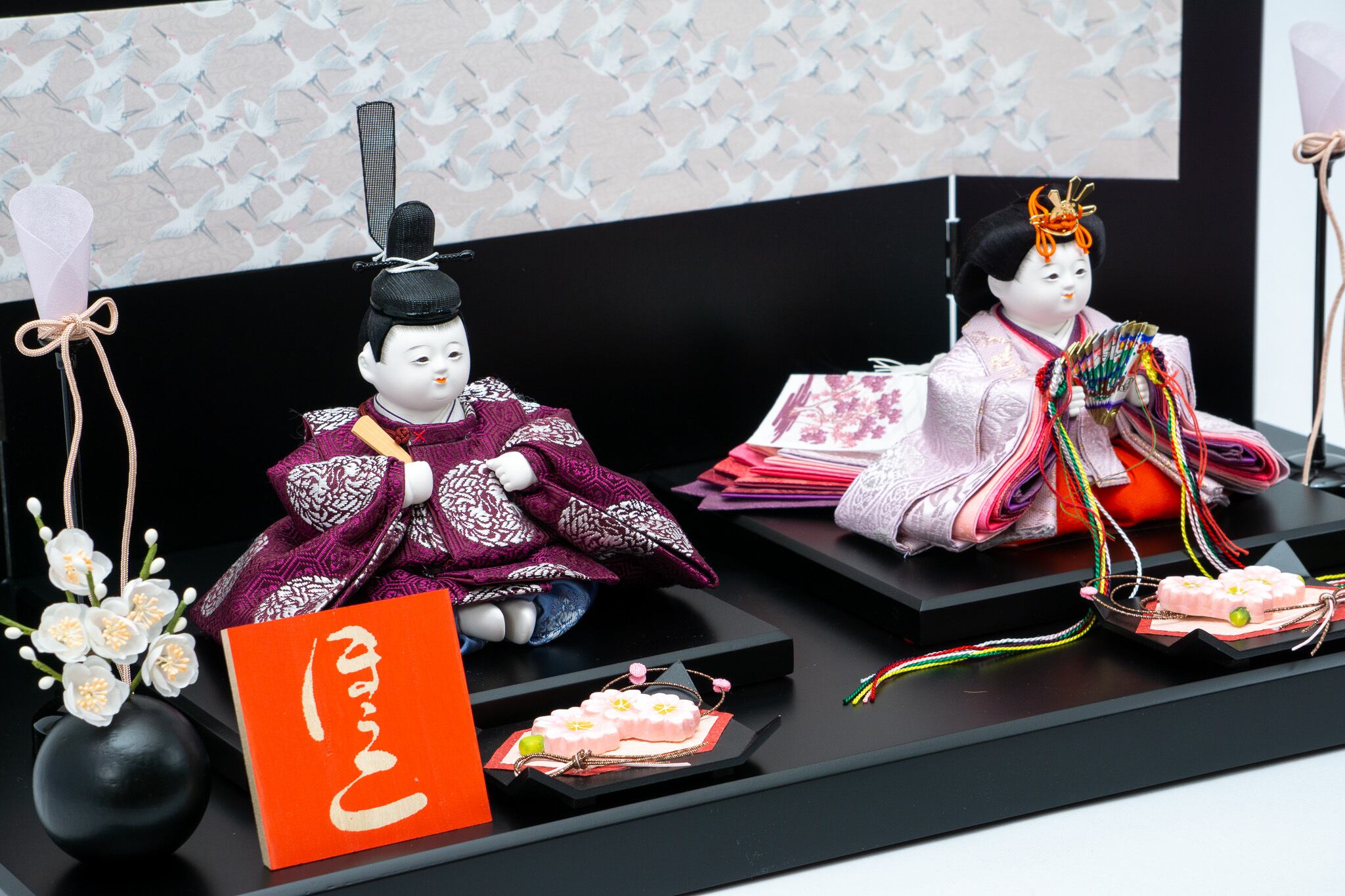 WEB-08 百年雛 3号 ほうこ雛 黒 台屏風 二人飾り A23W208