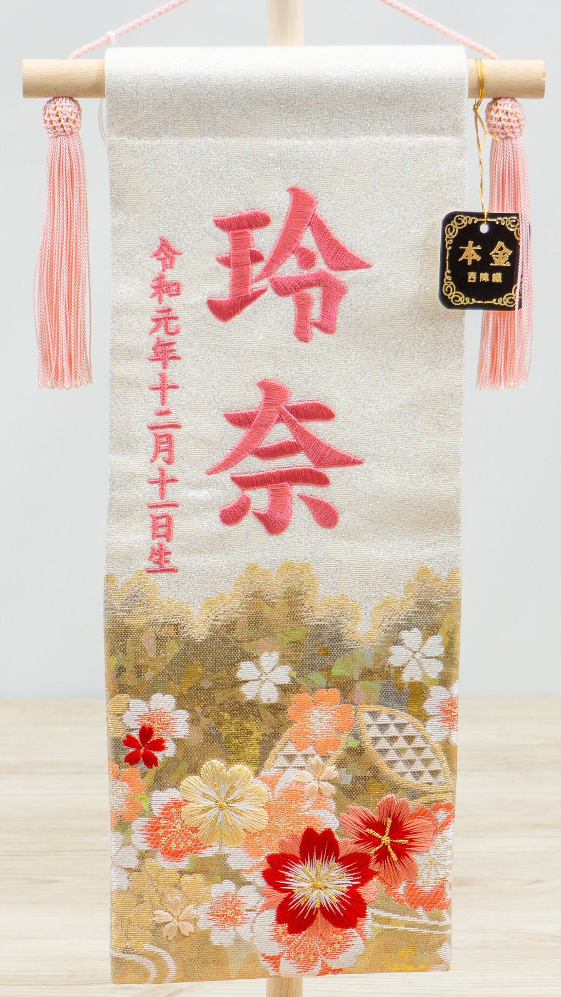 お名前と生年月日を金色の刺繍にてお作りいたします。
