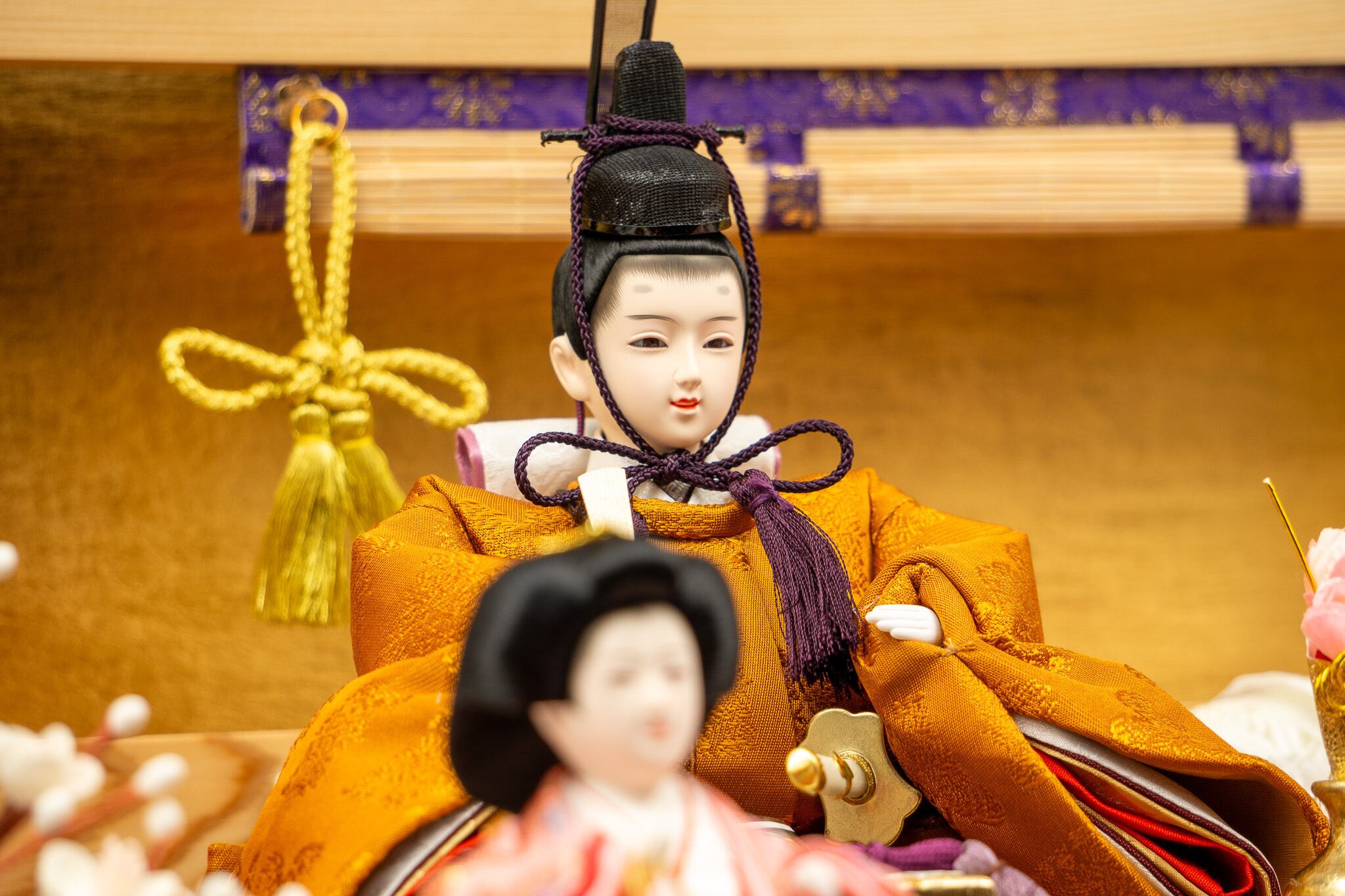 雅な平安時代の御所の雰囲気と空間を再現、異なる木の素材感と塗装を三色を使い現代的なイメージの飾りに演出したオリジナルの飾りです。お人形の衣装はお内裏様は黄櫨染(こうろぜん)という天皇のみが着用を許される色柄でおひなさまは有職文様(ゆうそくもんよう)の伝統的な柄の衣装です。三人官女を飾り、省スペースで平安の優雅さと伝統美を今に伝えるおひなさまです。創業110周年記念として製作した数量限定です。